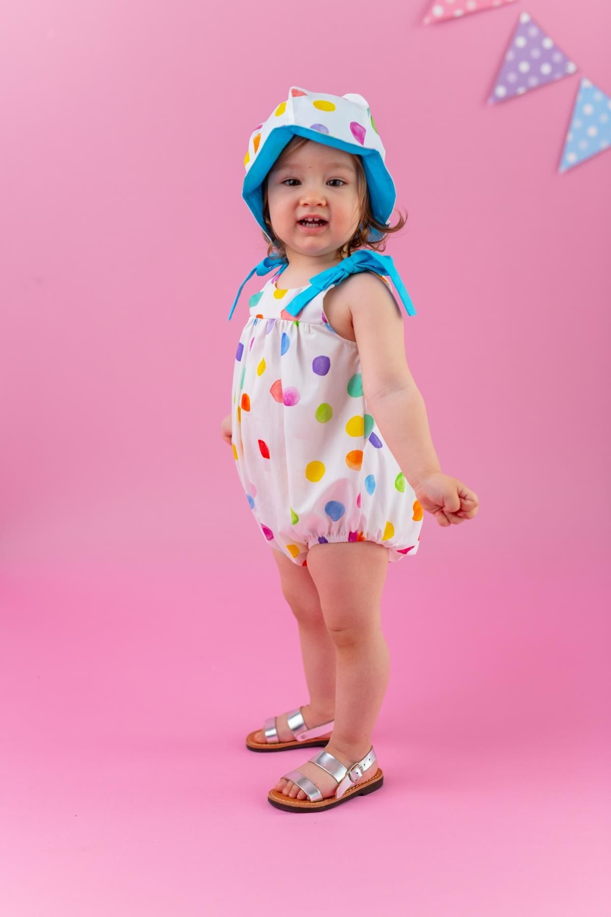 %100 pamuk kumaştan üretilmiştir. Omuz askıları bağcıklıdır, ayarlanabilirdir. Alttan çıtçıtlıdır. Şapkası dahildir, ense kısmı lastiklidir. Kolay giyim imkanı sağlar.